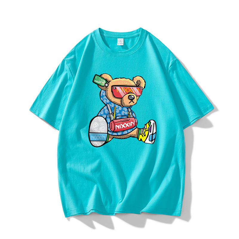 Black NASA Cartoon Summer Cotton T-Shirt Bear Print T-Shirt