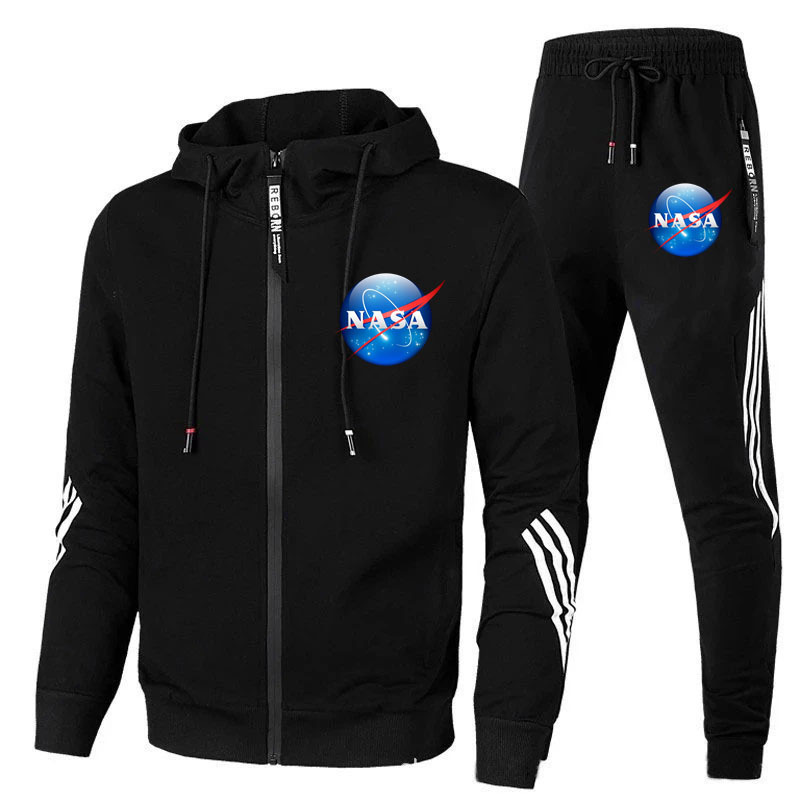 Men’s Sweater Suit NASA Black Fleece Loose Hoodie Set